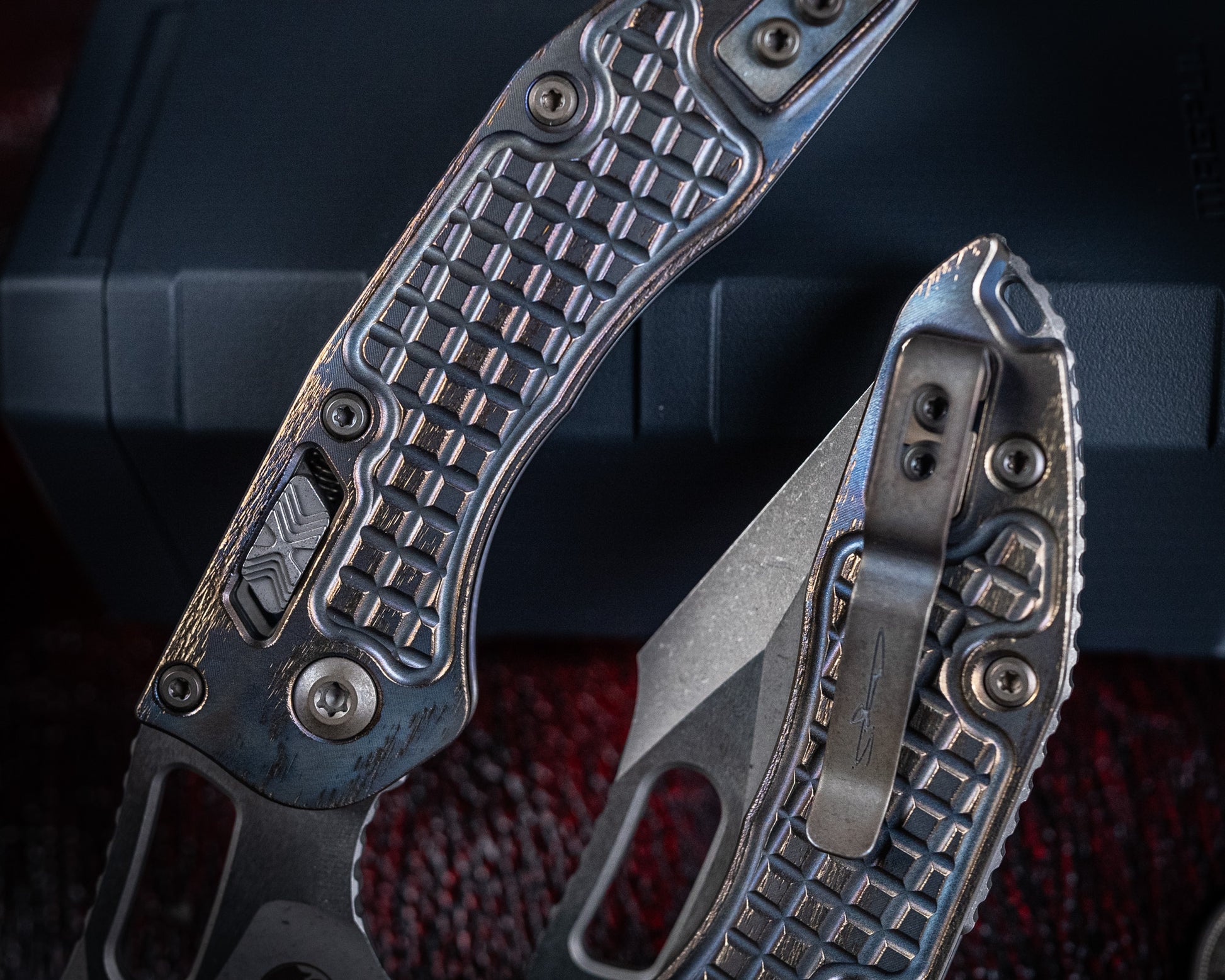 Finish details: Cosmic Stitch Ram-Lok Titanium Slab Apocalyptic Partial Serrated - Marfione Select