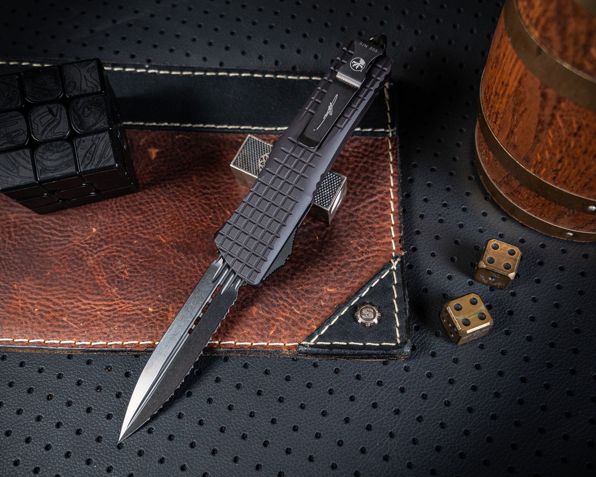 Microtech knives largest OTF production knife is named after the Troodon dinosaur. The Combat Troodon is the really large version of the popular Troodon. Despite the size the handle feels slim and comfortable. The action of course is Microtech excellent as you would expect. Big and bad!