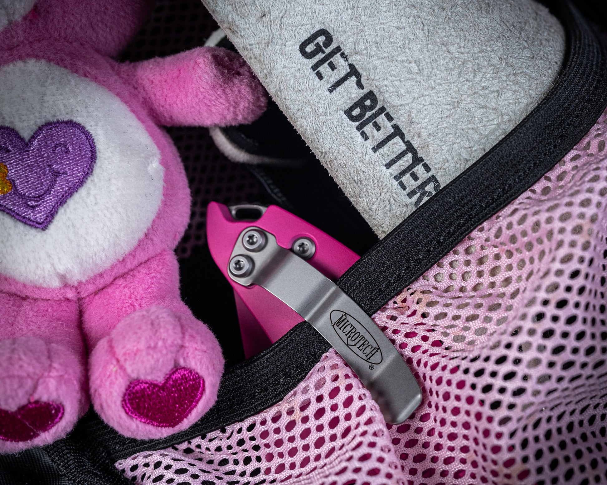 The Stitch model meets a standout in this carefully cerakoted pink Microtech Stitch. Not just any pink.. Hot pink, my friends. Add this piece to your pocket--there is no doubt it will be a conversation starter to all.